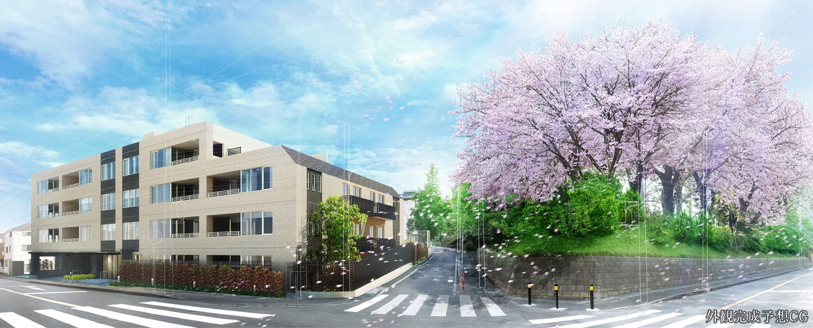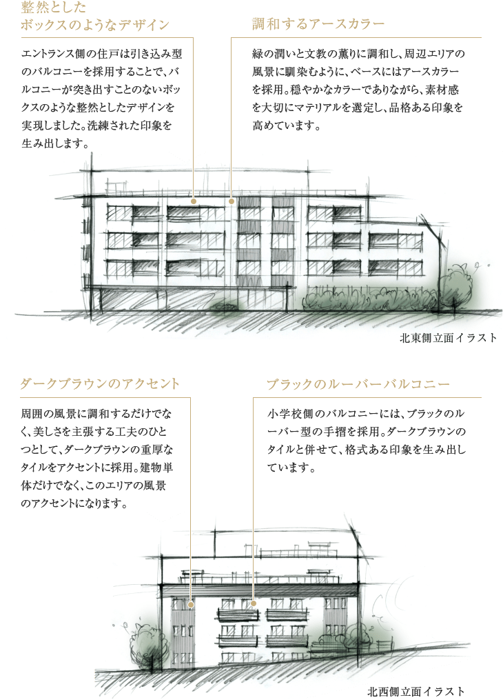低層の洒なレジデンスでありながら、この地の風景をより美しくする主張を忘れず、上質であることにこだわりました。