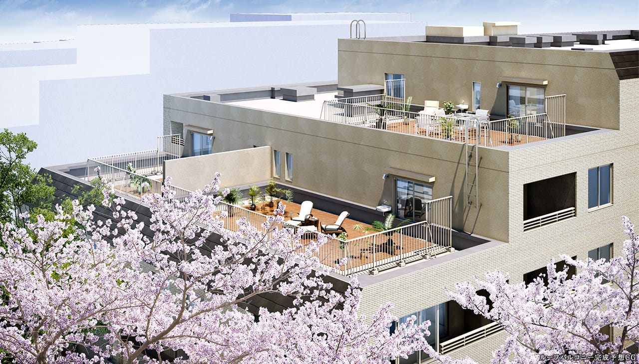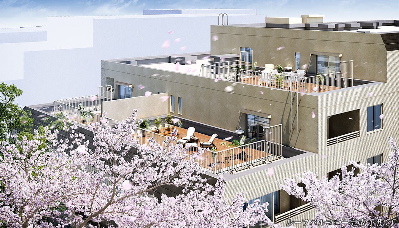 ルーフバルコニーで心地いい風と緑の潤いを感じながら、ゆっくりと寛ぎのひとときをお過ごしください。